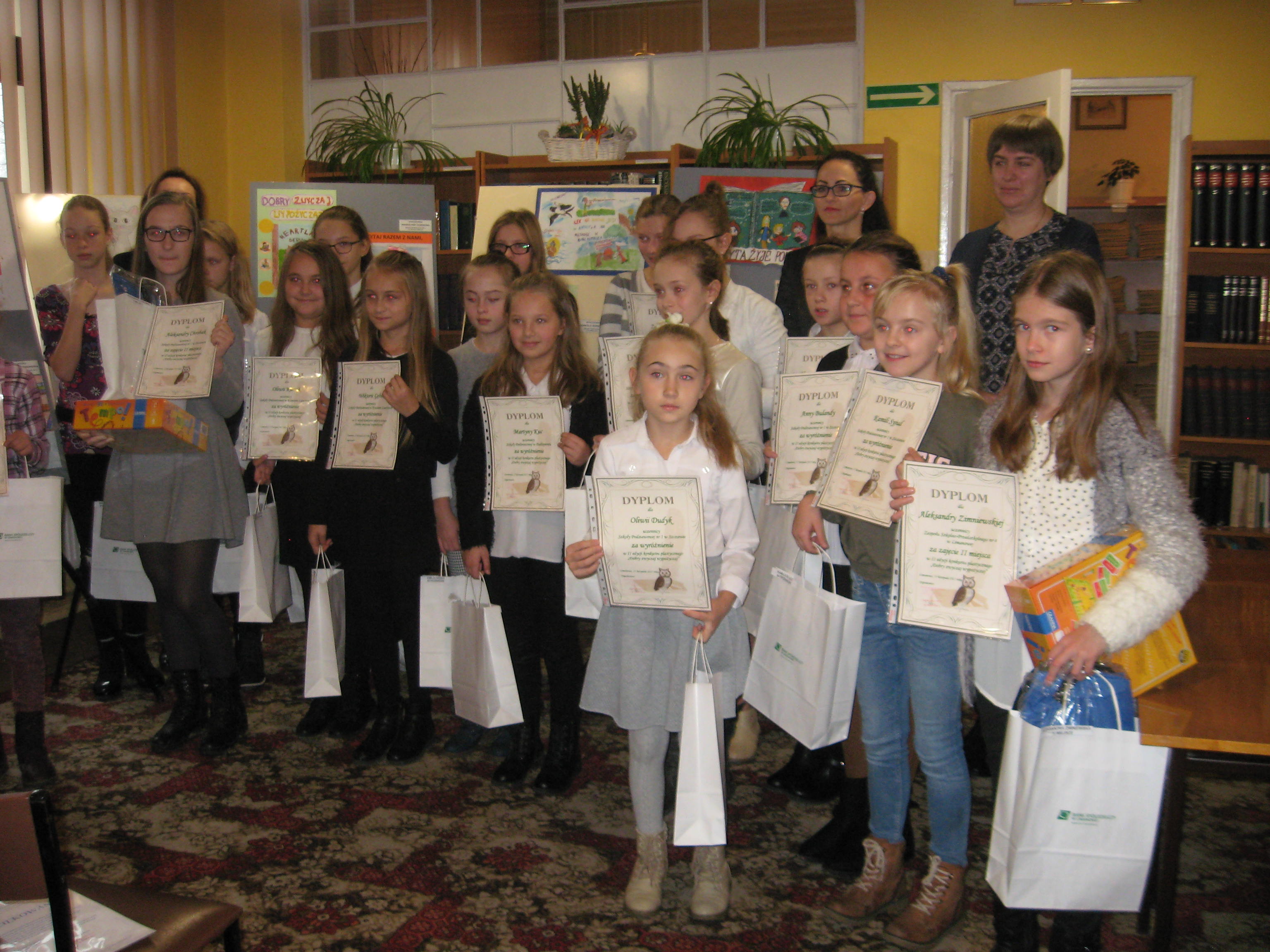 W czytelni Biblioteki Pedagogicznej w Limanowej 17 listopada br. uroczyście podsumowano i rozdano nagrody w II edycji plastycznego konkursu czytelniczego na plakat pod hasłem: „Dobry zwyczaj wypożyczaj”, zorganizowanego przez bibliotekę we współpracy z nauczycielami szkół podstawowych powiatu limanowskiego realizujących w 2017 roku Narodowy Program Rozwoju Czytelnictwa, przy wsparciu Banku Spółdzielczego w Limanowej jako głównego sponsora nagród dla uczestników. Konkurs był adresowany do uczniów klas IV-VI i miał na celu przede wszystkim propagowanie wśród dzieci i młodzieży czytelniczych oraz plastycznych zainteresowań.