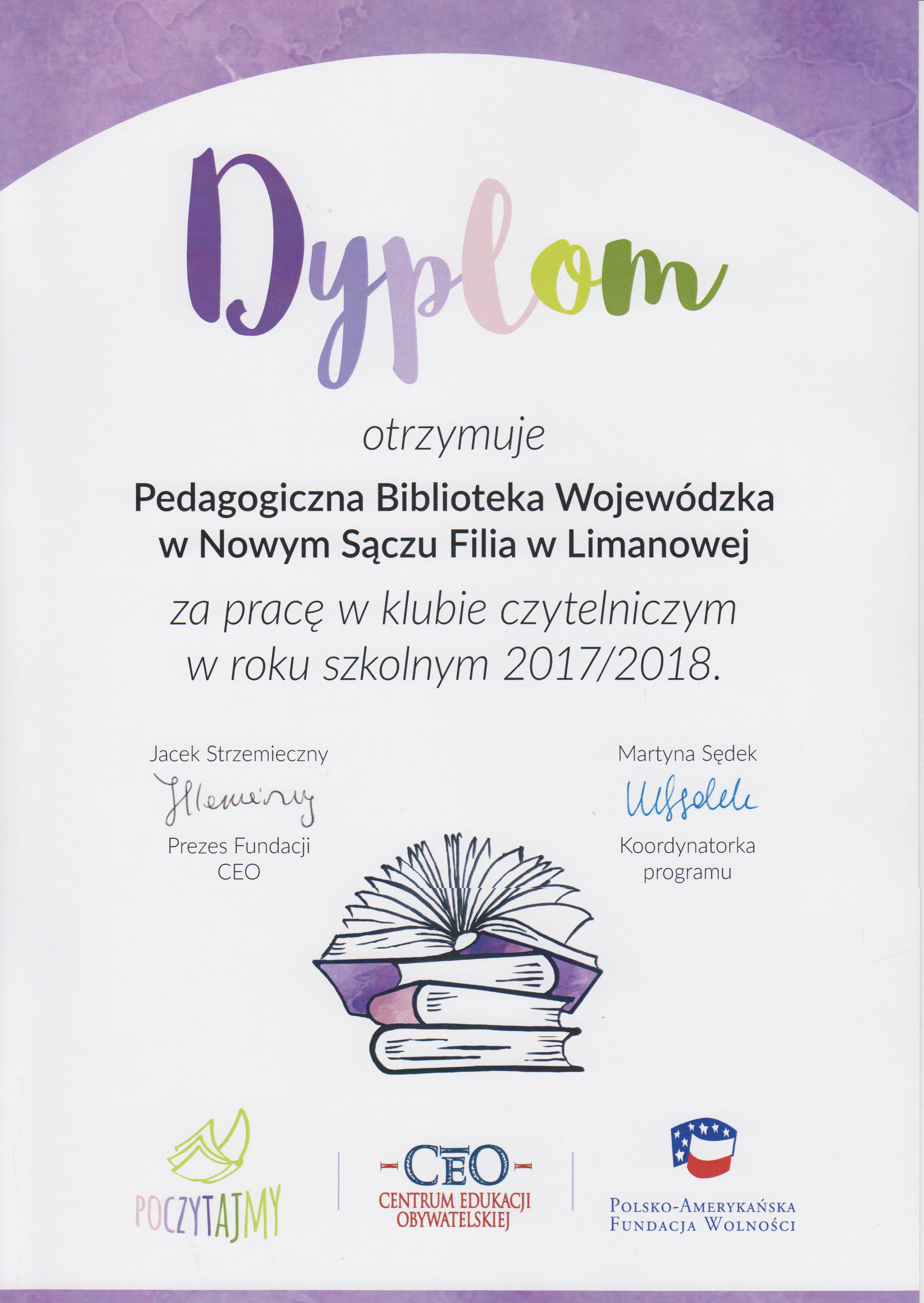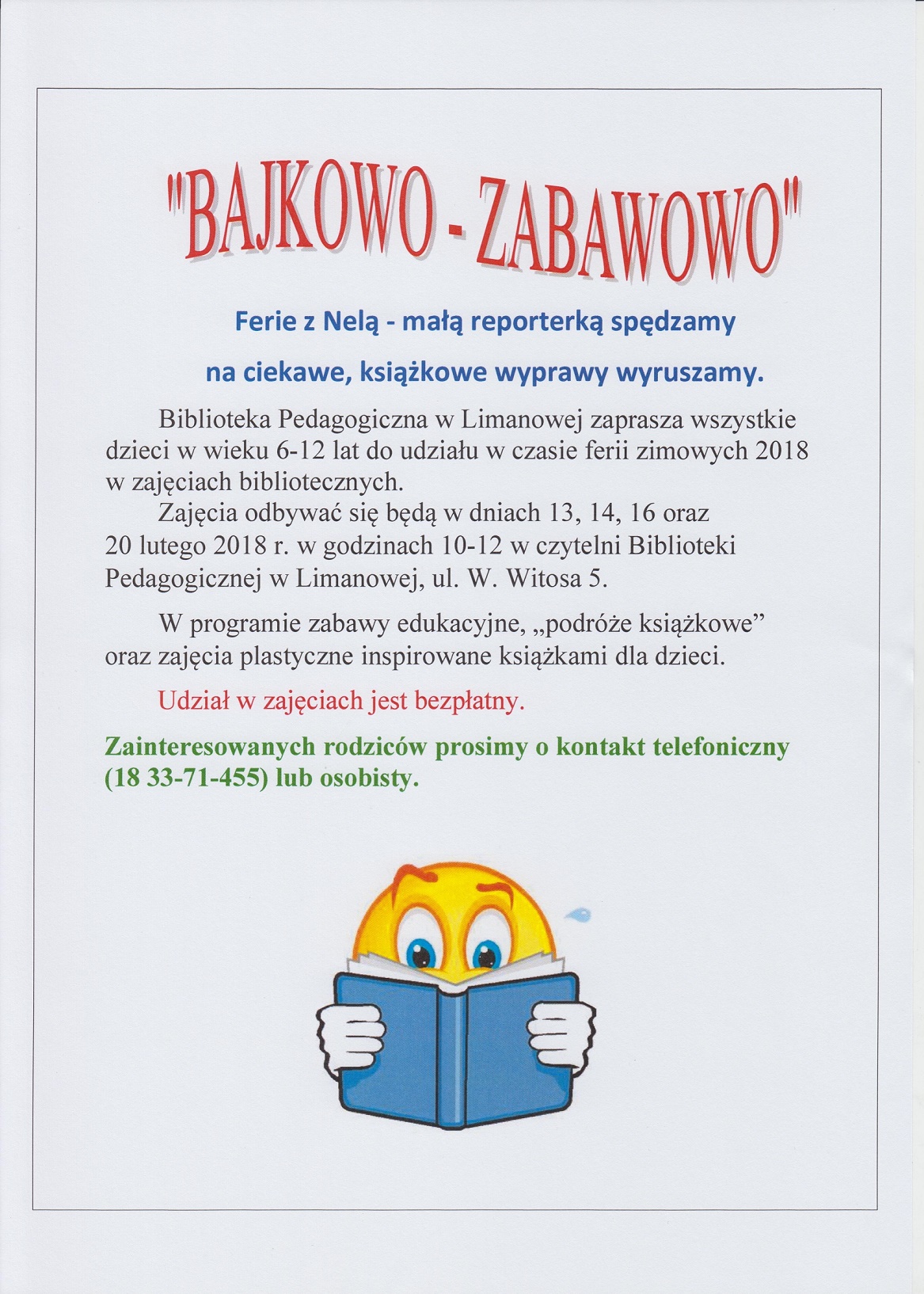 Biblioteka Pedagogiczna w Limanowej przystąpiła w w pierwszym semestrze roku szkolnego 2017/2018 do ogólnopolskiego programu "PoczytajMy". Program był realizowany we współpracy ze Szkołą Podstawową im. Królowej Korony Polskiej w Kłodnem oraz z Zespółem Szkół im. KEN w Tymbarku. Cyklicznie odbywały się spotkania czytelnicze dla dzieci w wieku przedszkolnym organizowane przez kluby czytelnicze, które powstały w/w szkołach.